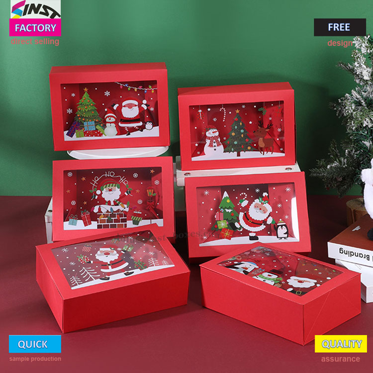 Tato vánoční bonboniéra se vyznačuje teplým červeným pozadím, obdélníkovým tělem krabičky a průhledným okénkem, jako okno pro nahlédnutí do zimní pohádky. Tato vánoční bonboniéra vyrobená z tvrdého papírového materiálu, který umí vystavit bonbony uvnitř a má určitý stupeň stability. Lze jej přizpůsobit každodenním věcem, jako je čokoláda, zákusky, sušenky, gumové bonbóny atd.; Není to jen roztomilá nádoba na cukroví, ale také stolní vánoční dekorace. Dáte-li jej lidem pro osobní potřebu, můžete rozjasnit sváteční náladu, takže každá sladkost bude zabalena do obřadu.