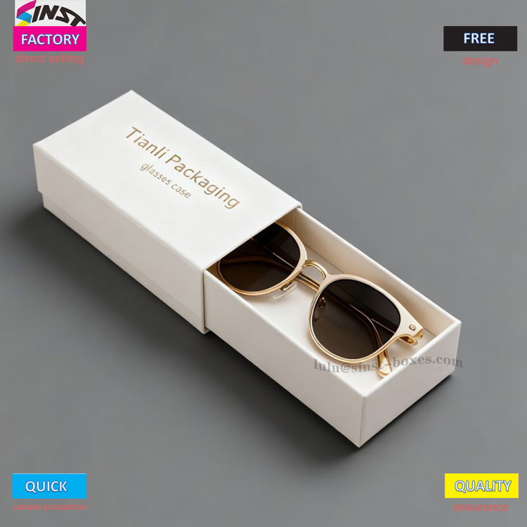 Jako značkové pouzdro na brýle je text ražený za tepla na víku a těle pouzdra na dotek texturovaný, což jej na první pohled odlišuje od ostatních běžných pouzder na brýle. Všestrannost dárkové krabičky Glasses je výraznější: jedná se o běžnou krabici na odkládání sklenic pro každodenní použití s úhledně uspořádanými zásuvkami; Při předávání dárků zákazníkům nebo přátelům se zlatobílé balení v business stylu okamžitě promění ve stylové dárkové pouzdro na brýle; Pokud chcete být exkluzivnější, můžete také najít továrnu na přizpůsobení a přidání loga značky nebo požehnání na tělo krabice, čímž ji upgradujete na jedinečné přizpůsobené pouzdro na brýle - obsahuje nejen brýle, ale také věnuje pozornost příjemci.